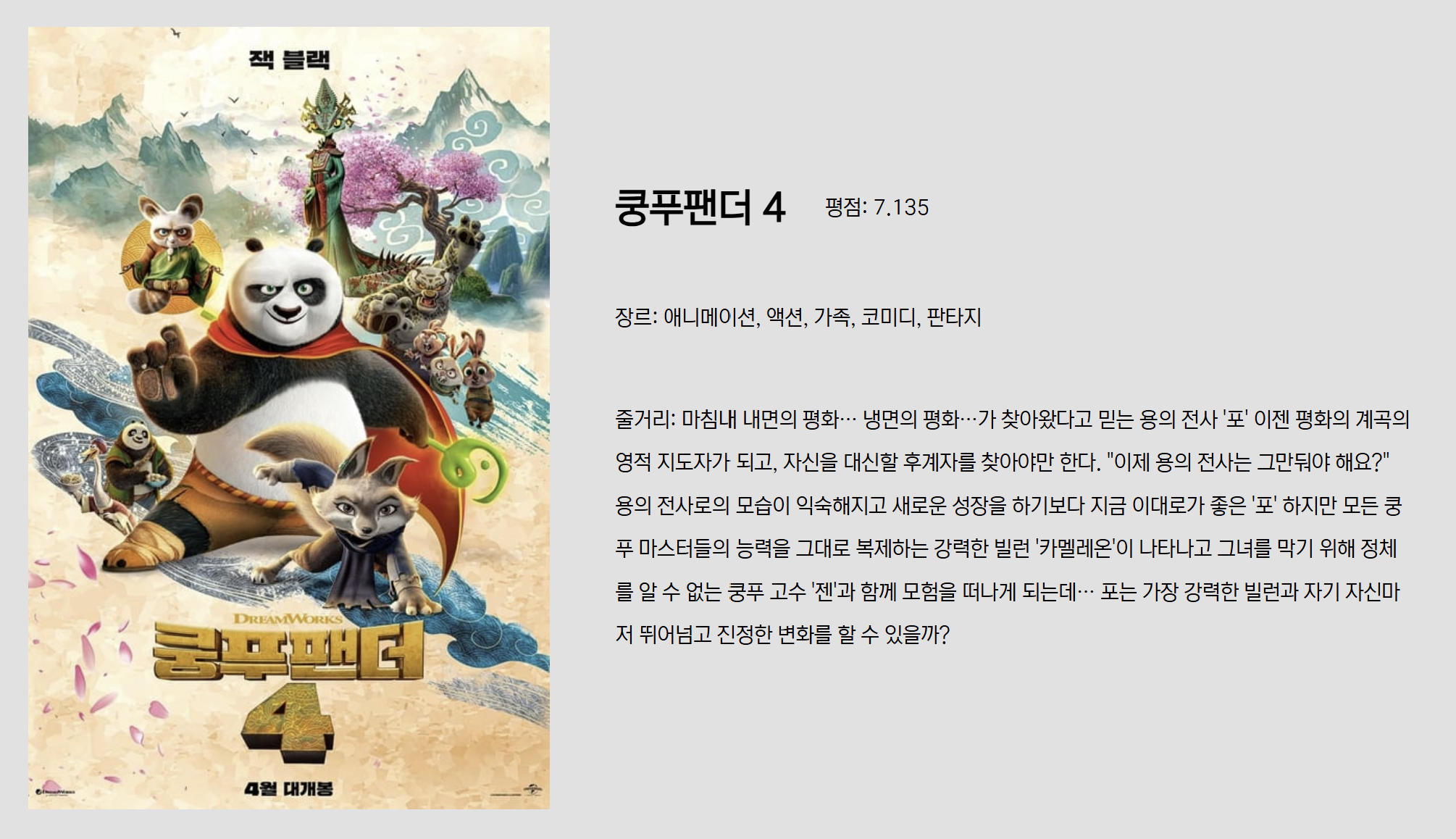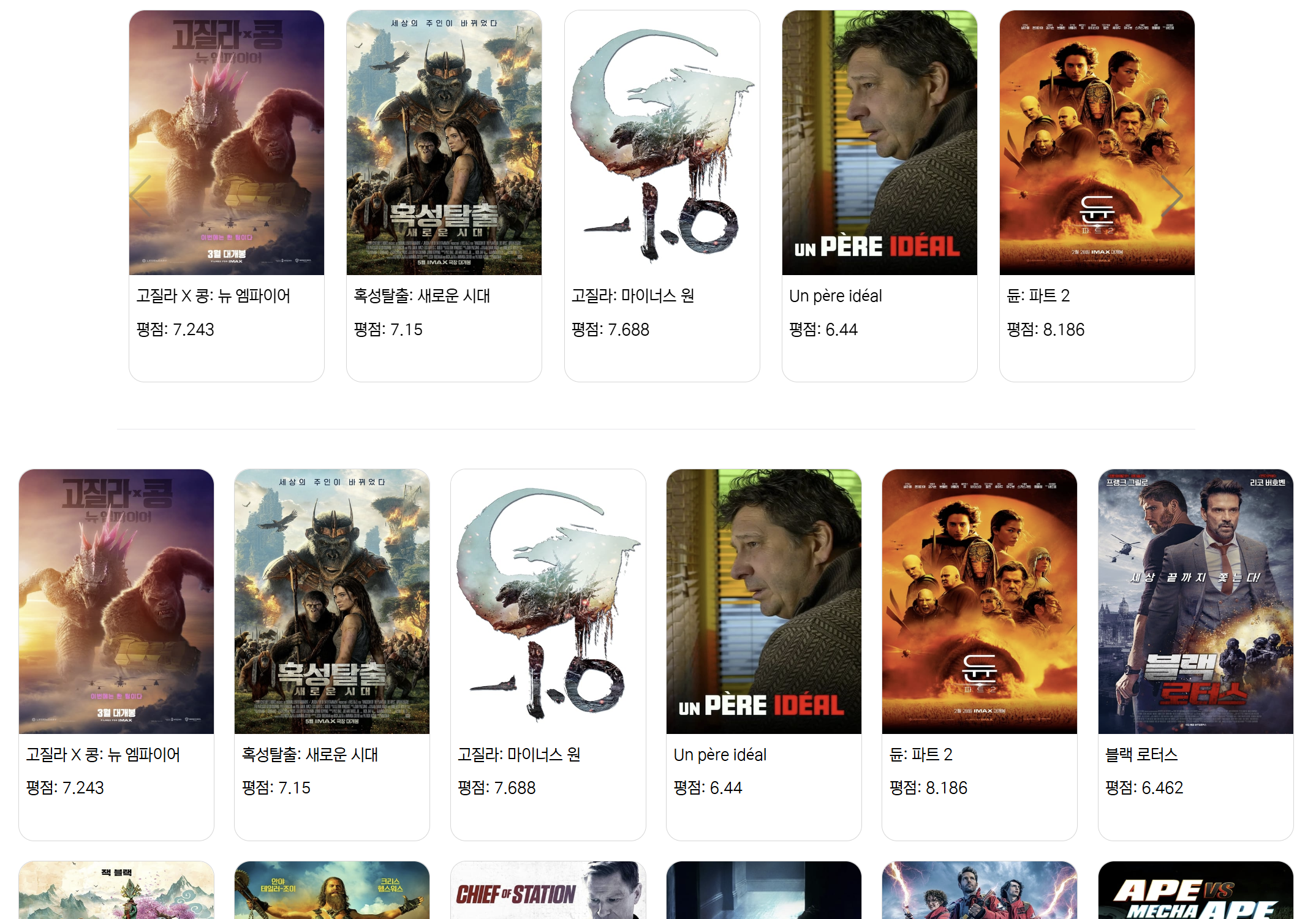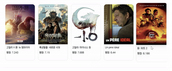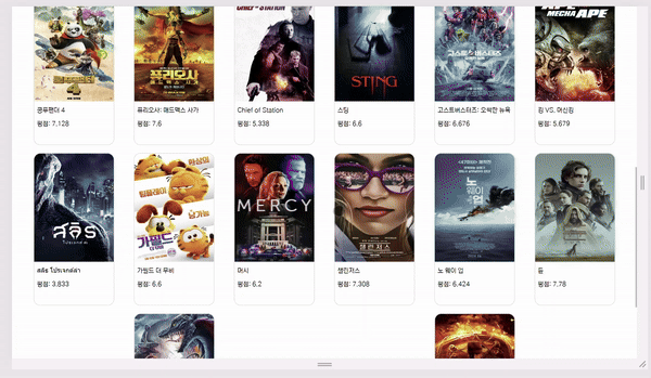 - movieListData를 props로 내려주어 MovieCard 컴포넌트에서 이 데이터를 활용해 각 영화의 UI를 개별적으로 구성한다.